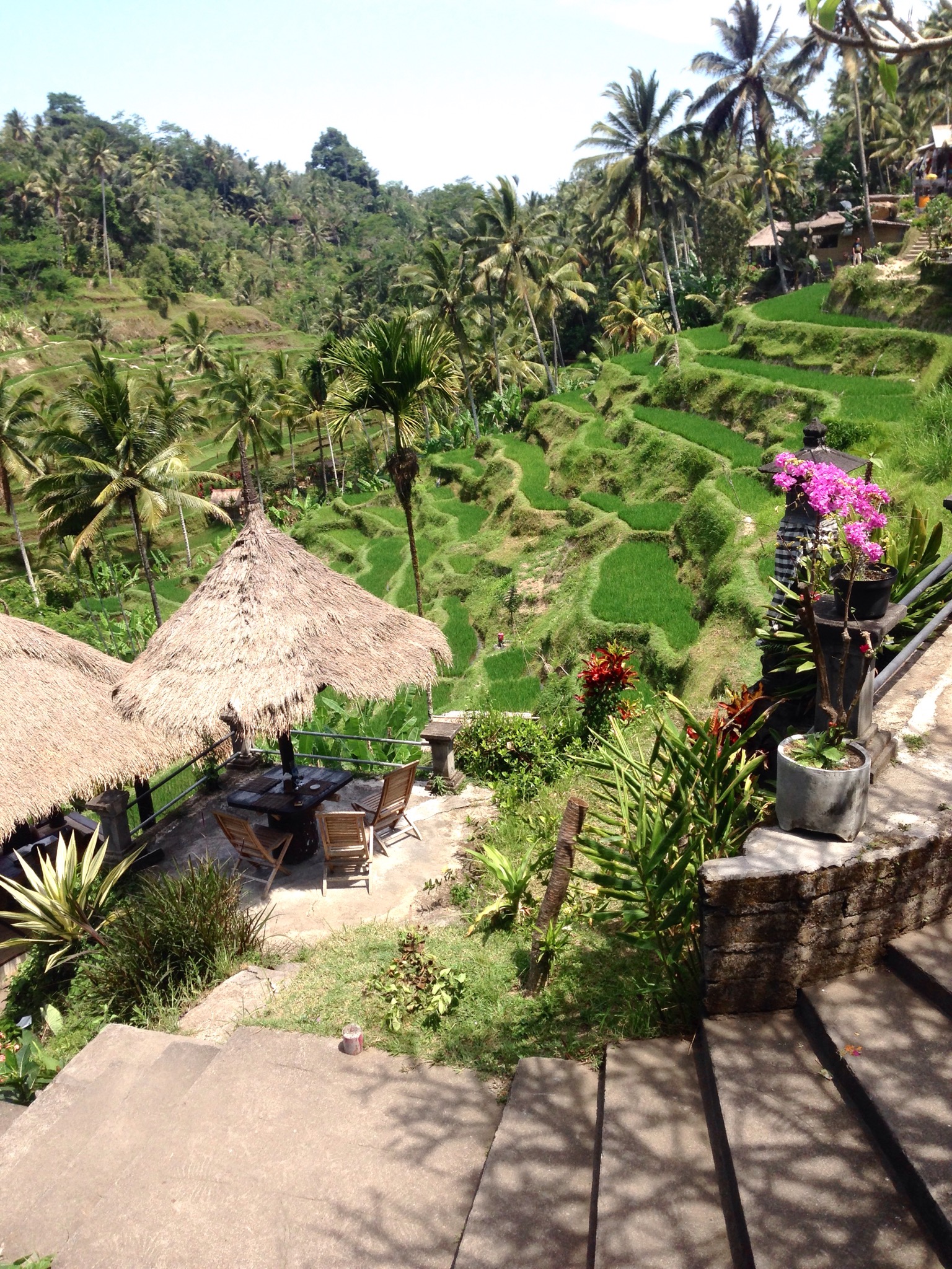 We stopped for lunch at a ridge overlooking some lush rice paddies. No one was working in them – too hot midday – they work early in the morning while it’s still relatively cool.