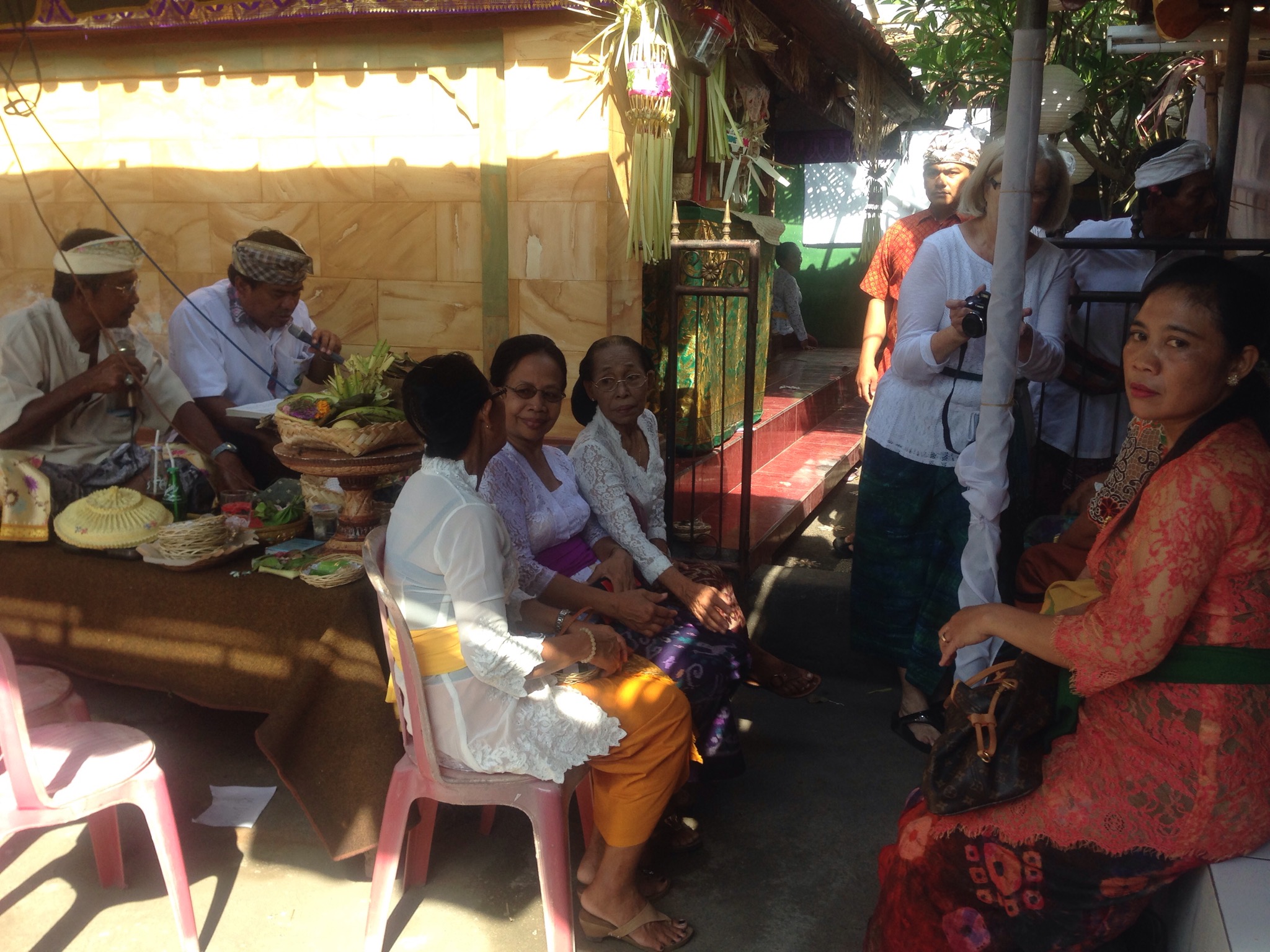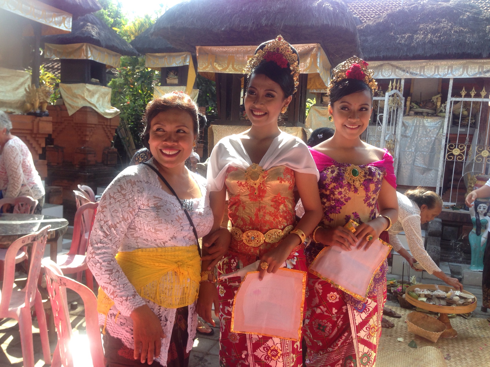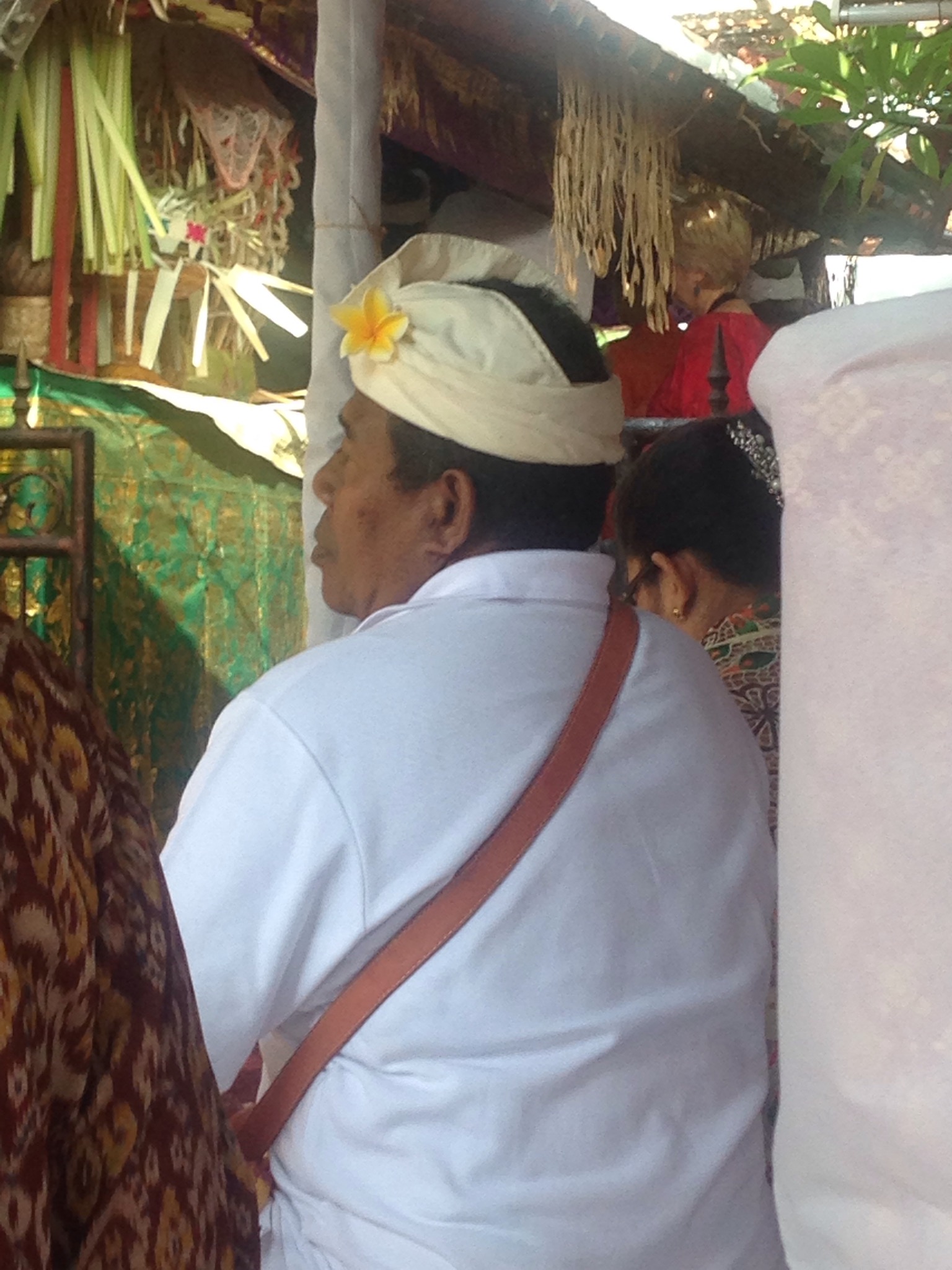 A small group of women nearby smiled, and beckoned me over – they didn’t speak any English, I have no Balinese, but it was clear the woman on the right, in green, approved of my attire.
