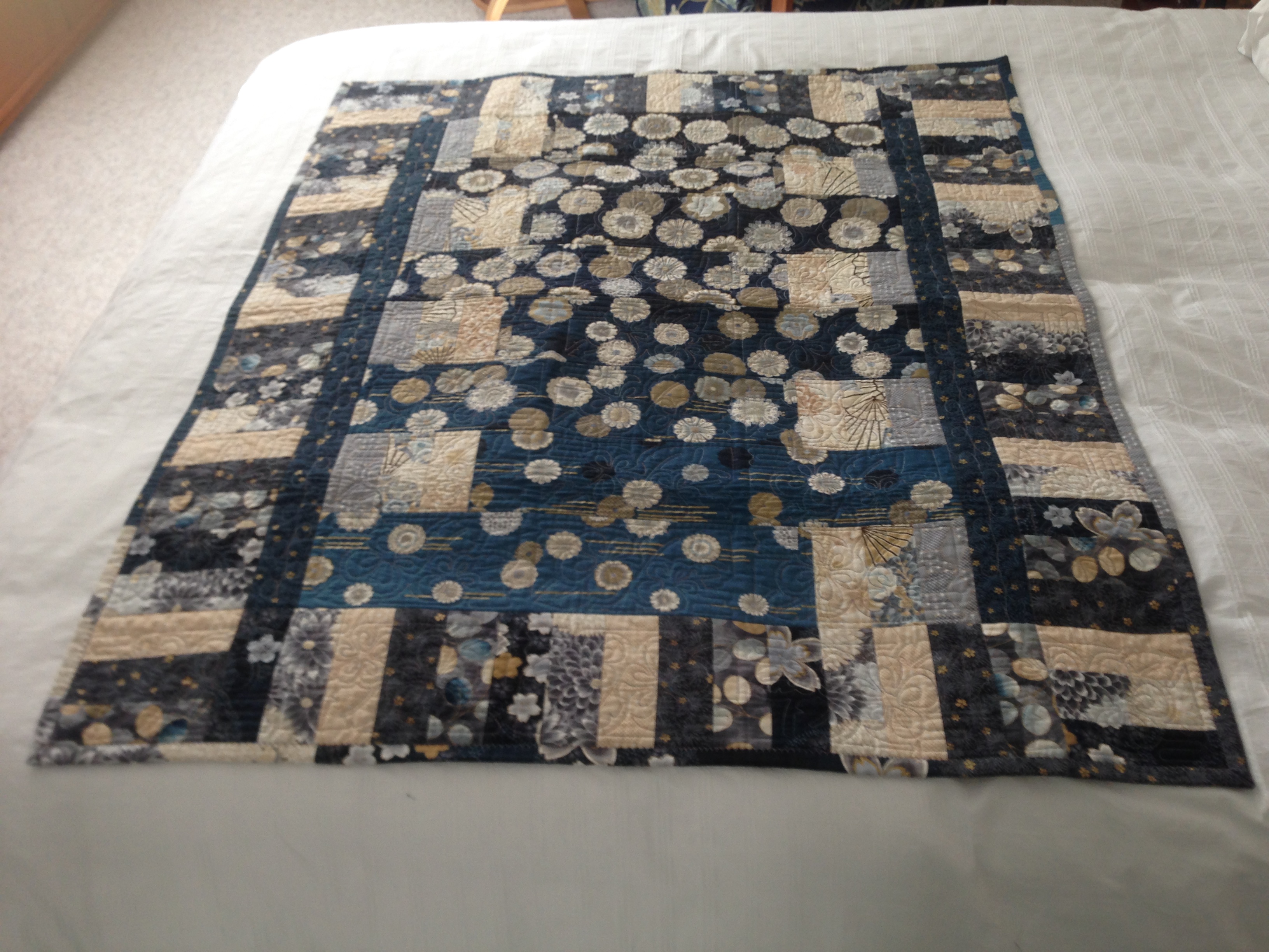 Next, I looked through my Pinterest collection of quilts but nothing stood out. In fact it seemed that given this was to be for a boy’s bed it ought to be simple without a lot of piecing. So I decided to base the quilt on the lap quilt I’d made for myself: