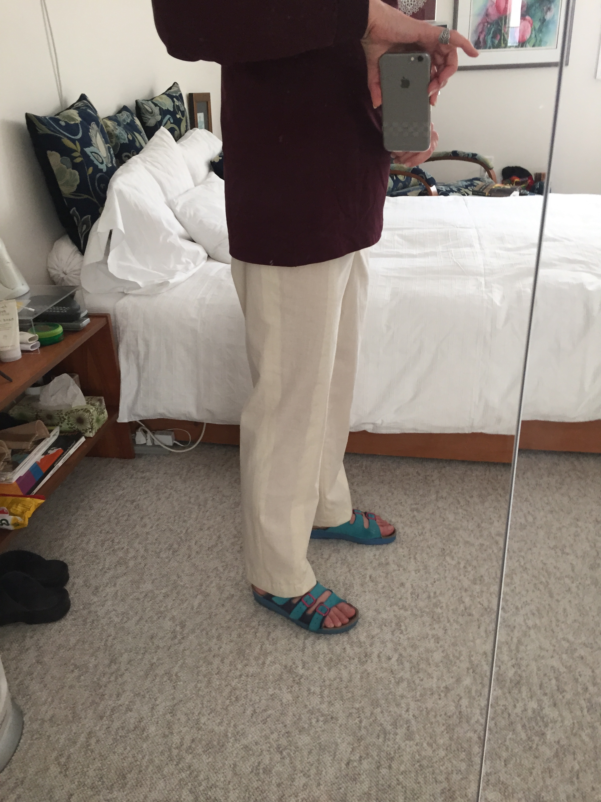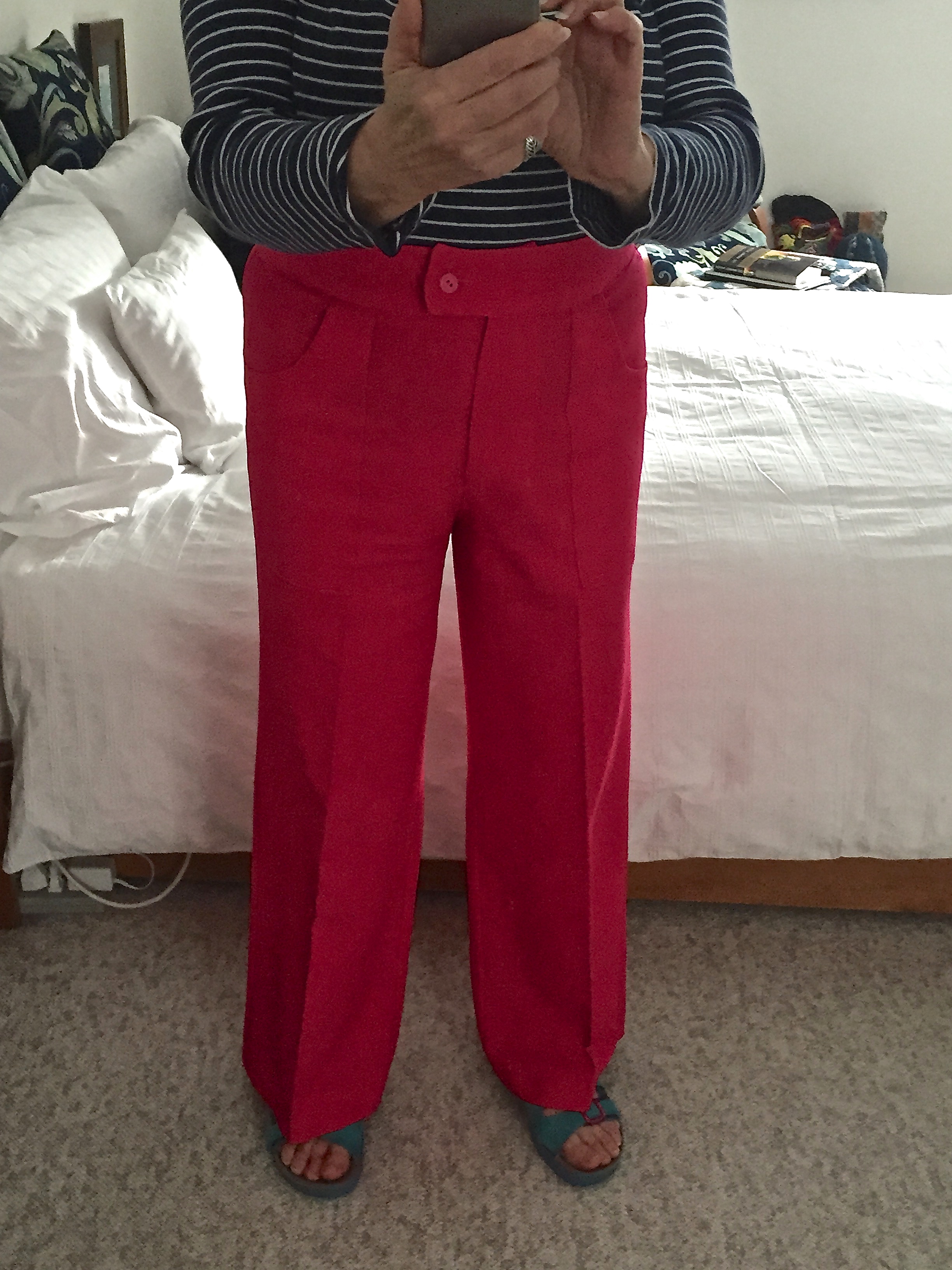 All in all, not a waste of time. If I could just find some decent corduroy I’d actually make another pair from this adjusted pattern just to see how they’d turn out in a heavier fabric. I’ll go shopping next week to see if I can find something.