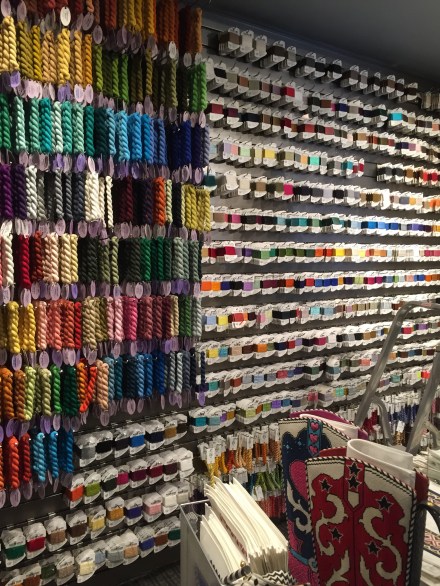 After a lunch on my own and a rest back at the hotel I meet up with one of the other women here to learn about fitting patterns. We wander back to Union Square. From street level we see a sign: Needlepoint Inc. We find the entrance, and take the elevator to the shop. I’ve never seen such an array of threads and printed canvasses. A woman is working on a sizable picture of a nutcracker. Her stitching is meticulous.