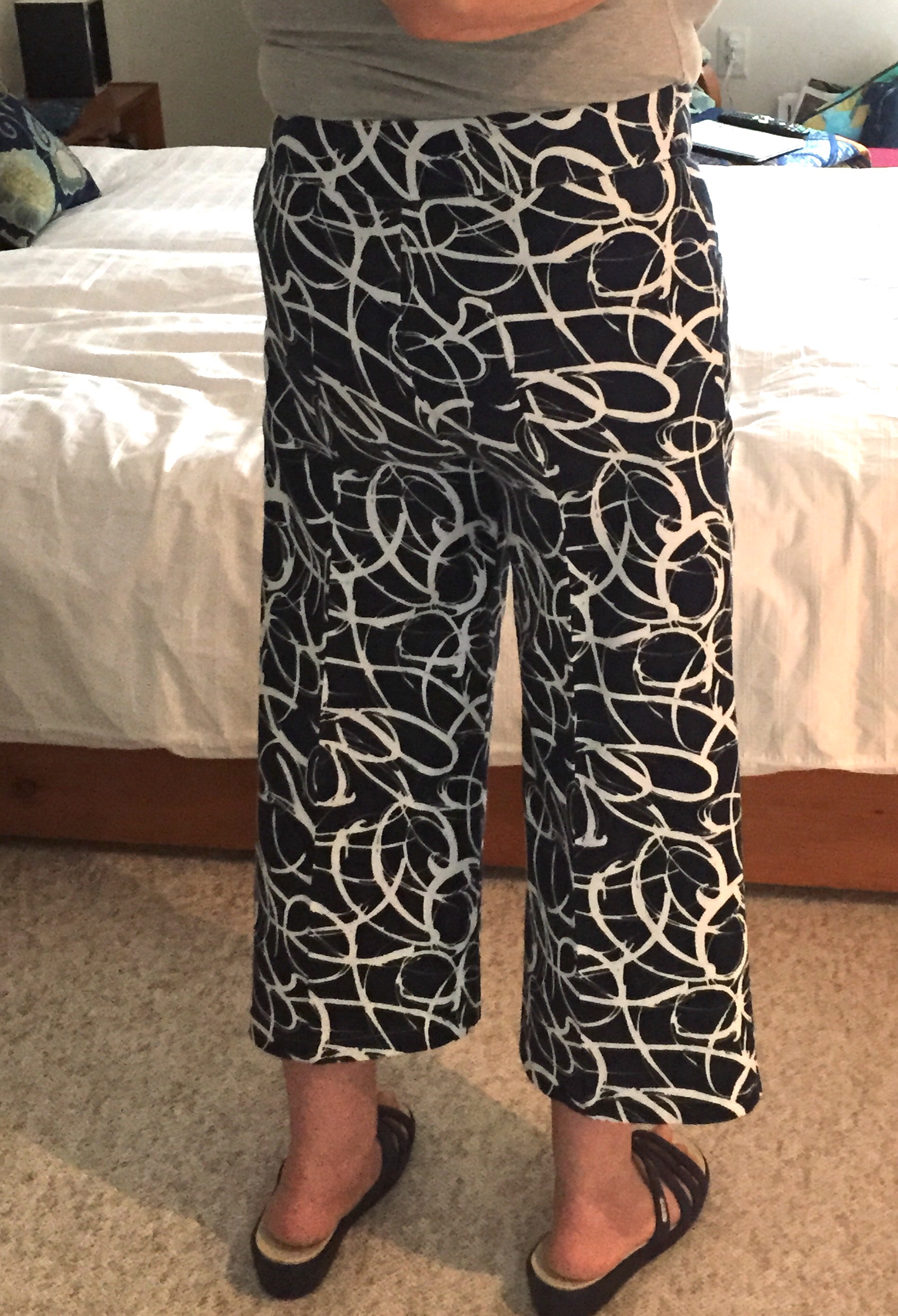 All of the pants were made from a palazzo pants pattern – with modifications as I went along – the legs got narrower, some ended up cropped, the first pair had the side opening used in the pattern, but second pair on I changed to a fly front.