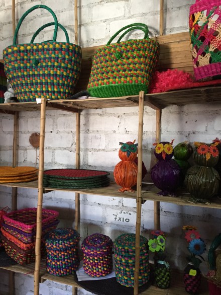 He weaves baskets in a variety of shapes and sizes and weaving patterns. As with all craft production, he doesn’t really earn much for his time. Although you might think his prices high you have to realize it probably took him a full day to make a medium size basket. It’s a family business so he’s not the only weaver, but even with four or more people weaving, the time it takes to create these beautiful colourful baskets is substantial.