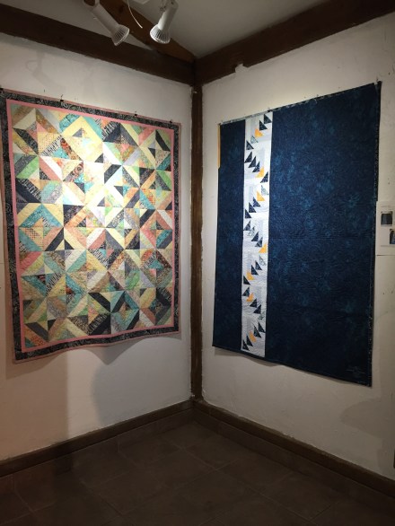 Now I needed a tunic length top. A while back I had made a top using Marsha McClintock’s t-Shirt Trifecta pattern – turned out well. So I looked through the garment fabrics I had on hand, found two jersey knits I’d purchased earlier in the spring. Cut out the pattern (had to use some of the leftover ITY knit for the top since I didn’t have enough of the jersey knit), sewed it up. Not as fast as the leggings, obviously, but a couple of hours and I had a finished tunic length top.