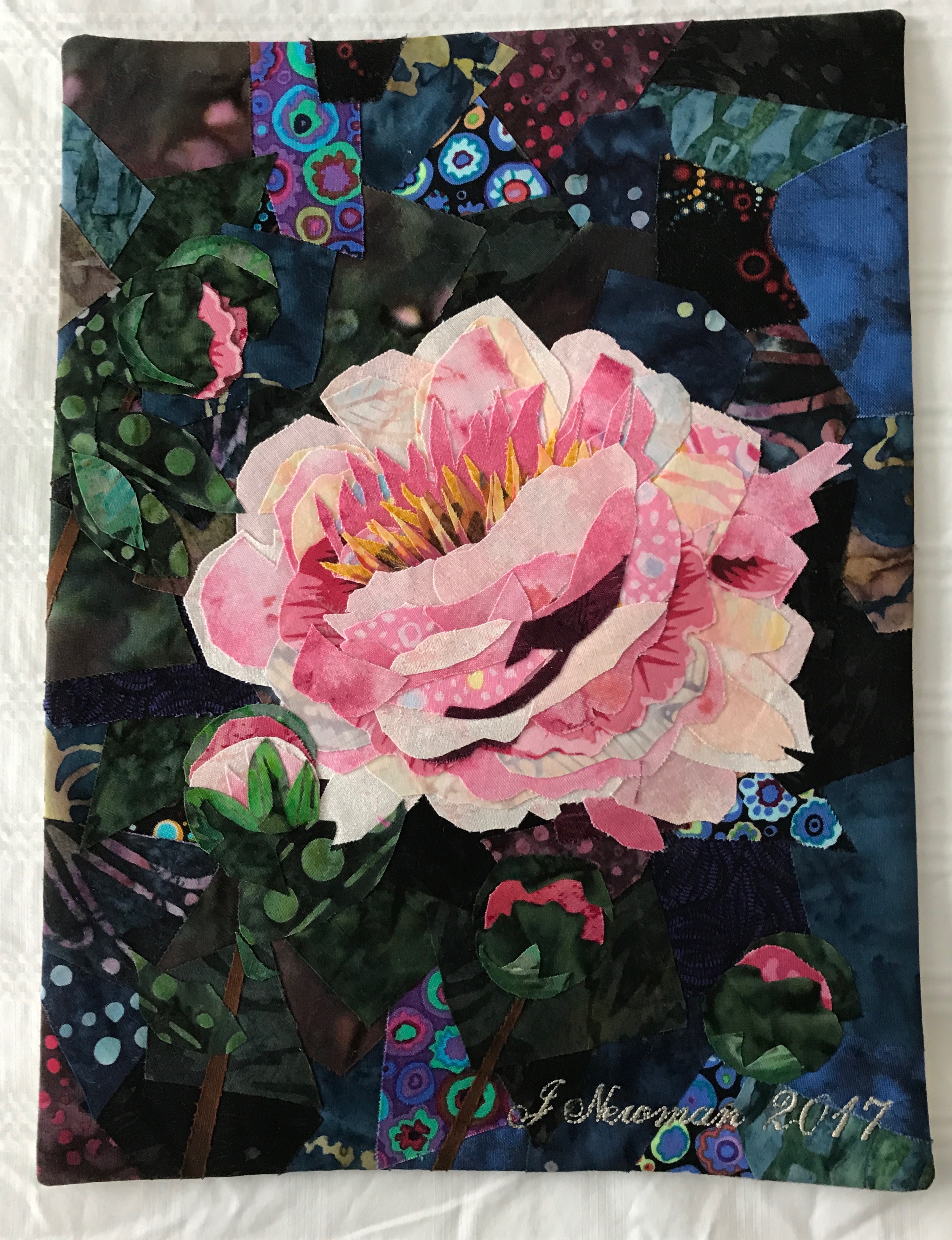 What I didn’t do here, but should have, was to apply fusible web to the fabric before cutting it – instead, I’ll use a glue stick to adhere the cut out pieces to the background.