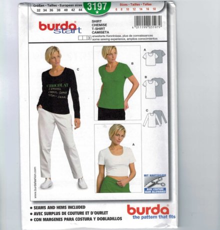 1. This has been my go-to t-shirt pattern for several years. It must have been re-issued at some point because my envelope looks slightly different. I’ve raised the neckline, created turtlenecks and made other assorted adjustments. Best fitting t-shitt pattern I’ve ever used.