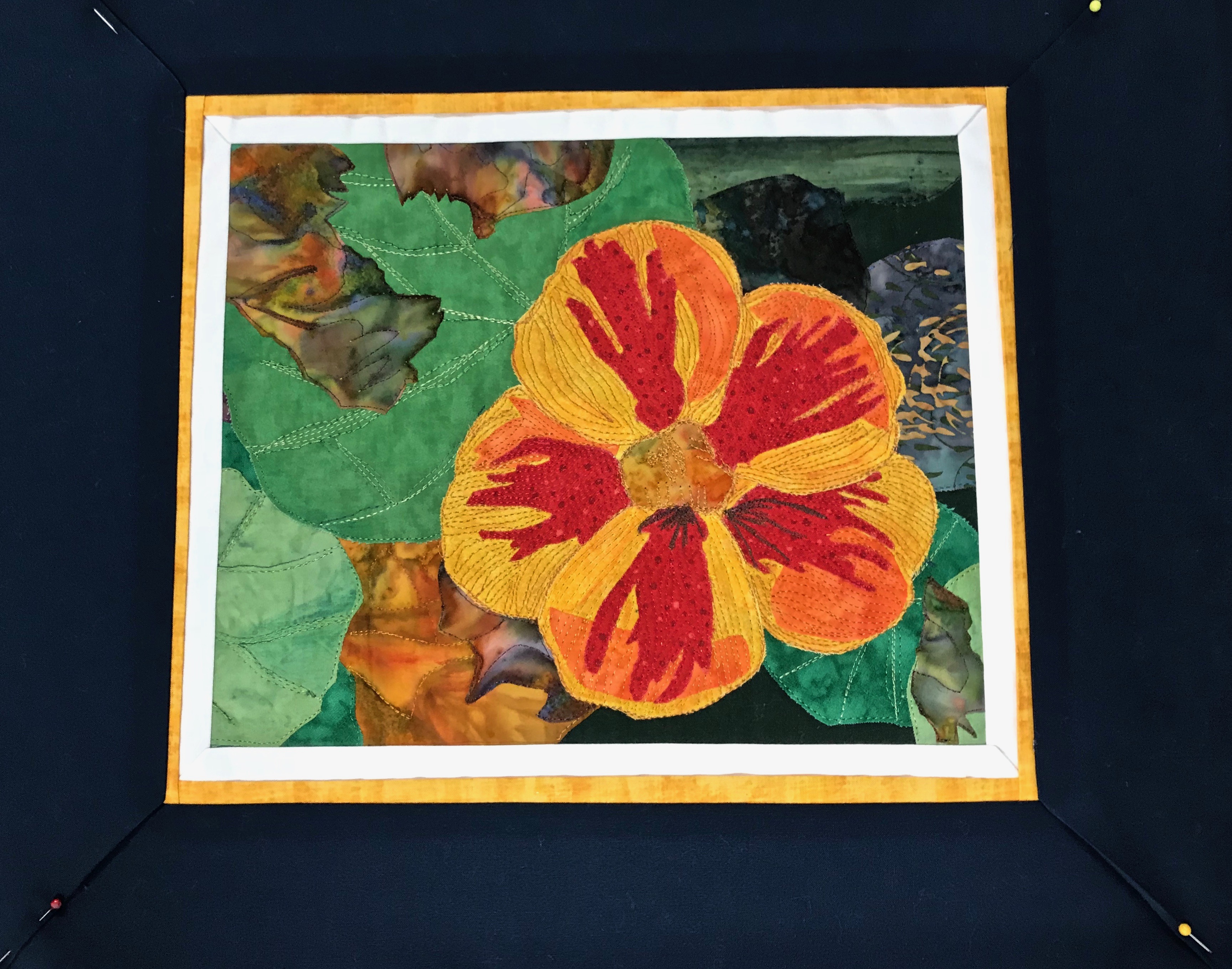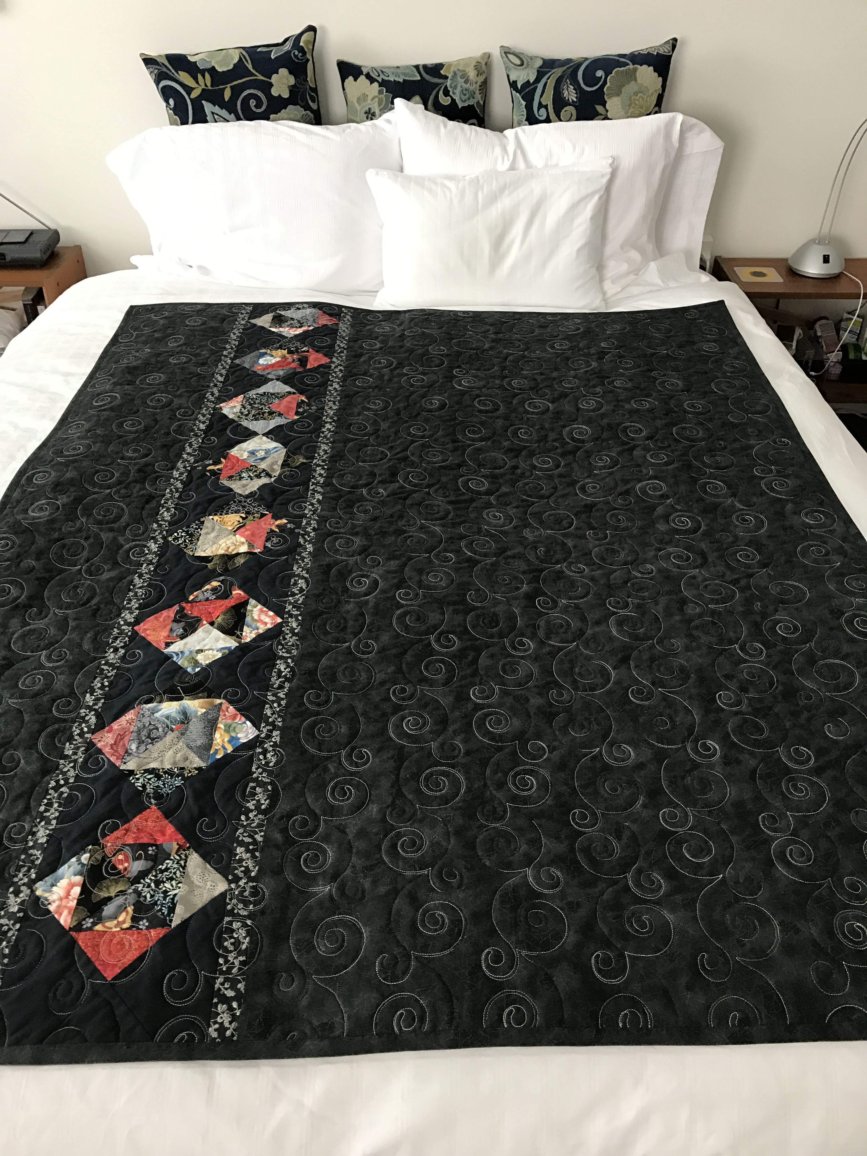 #1 – This is the latest quilt (Improv Quilt) – a strip/block because my strip wasn’t long enough and I fortunately had just enough backing fabric to border the strip converting it to a block.