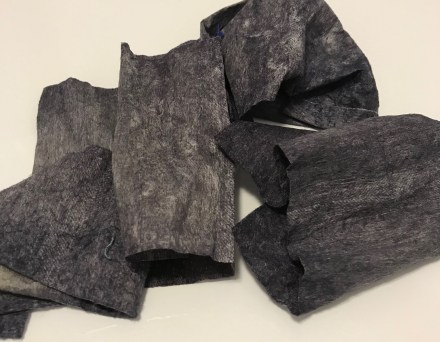 I used four just to make sure I would catch as much loose colour as possible. I added some Oxyclean (to get rid of whatever dirt was in the fabric), and an unscented detergent to cool water. (I probably should have added a cup of vinegar but I wasn’t sure how it would react with the Oxyclean – I will hand wash the jacket with added vinegar once it’s done to stabilize the colour before wearing it).