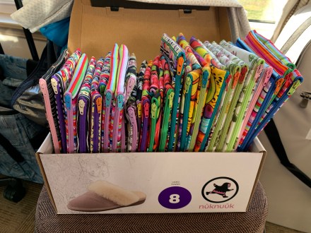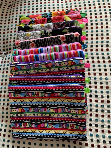 Today, I assembled the blocks for the original lap quilt project – a simple but colourful construction which I began at the sewing retreat. The half-square triangles used in the wall hanging came from the corner offcuts from the quilt blocks so you can tell how small the half-square triangles really are.