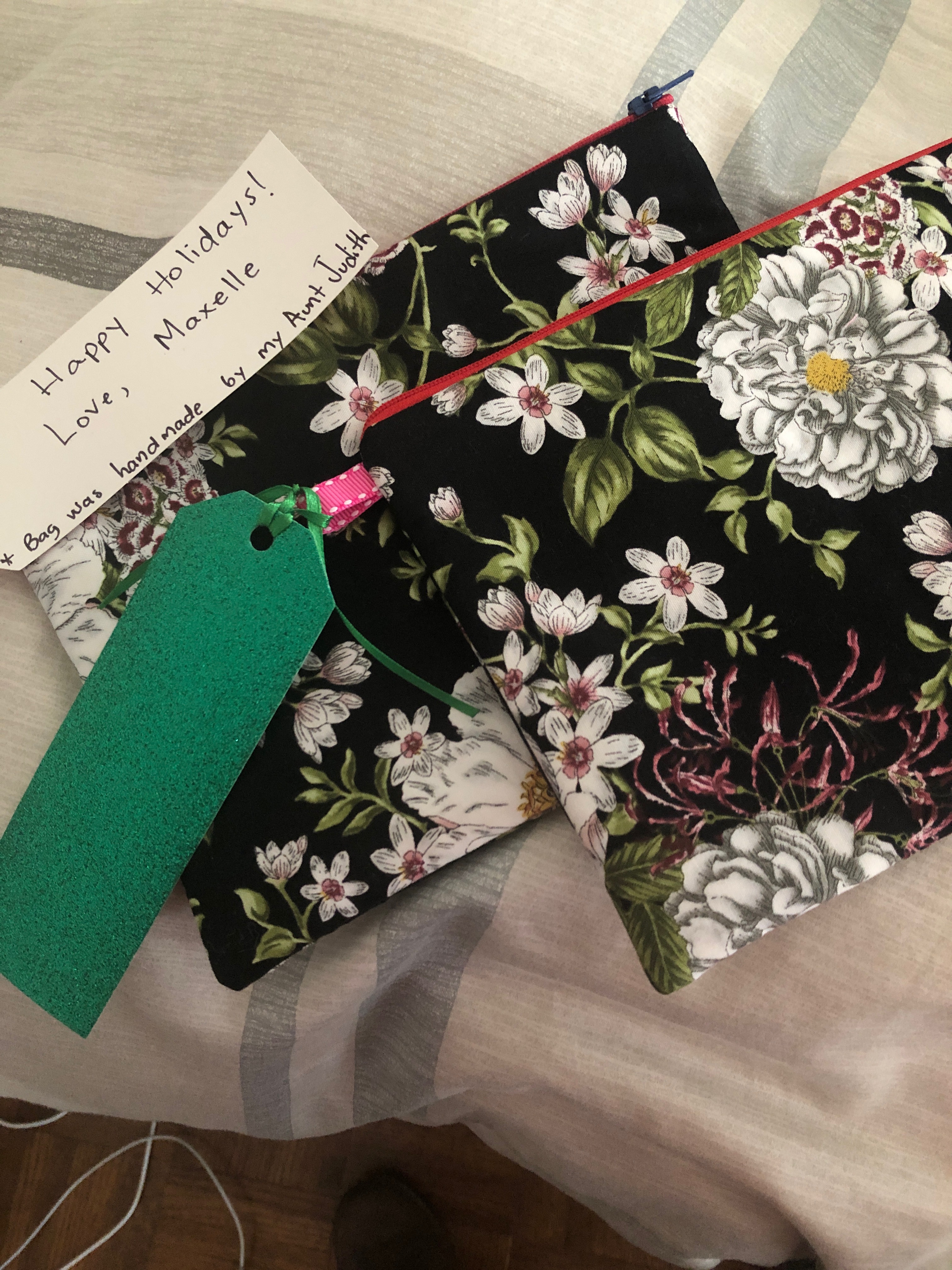 I should now have enough zippered bags for this season with a few left over to give away during the year. The bags don’t need to be wrapped – they are the wrapping and useful besides.