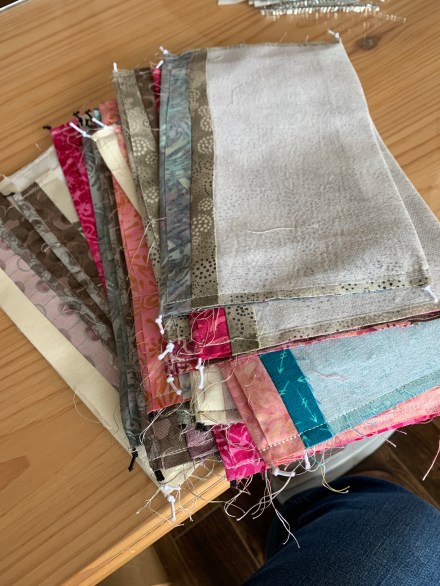 I got all 25 masks in today’s batch pinned and side seams sewn: