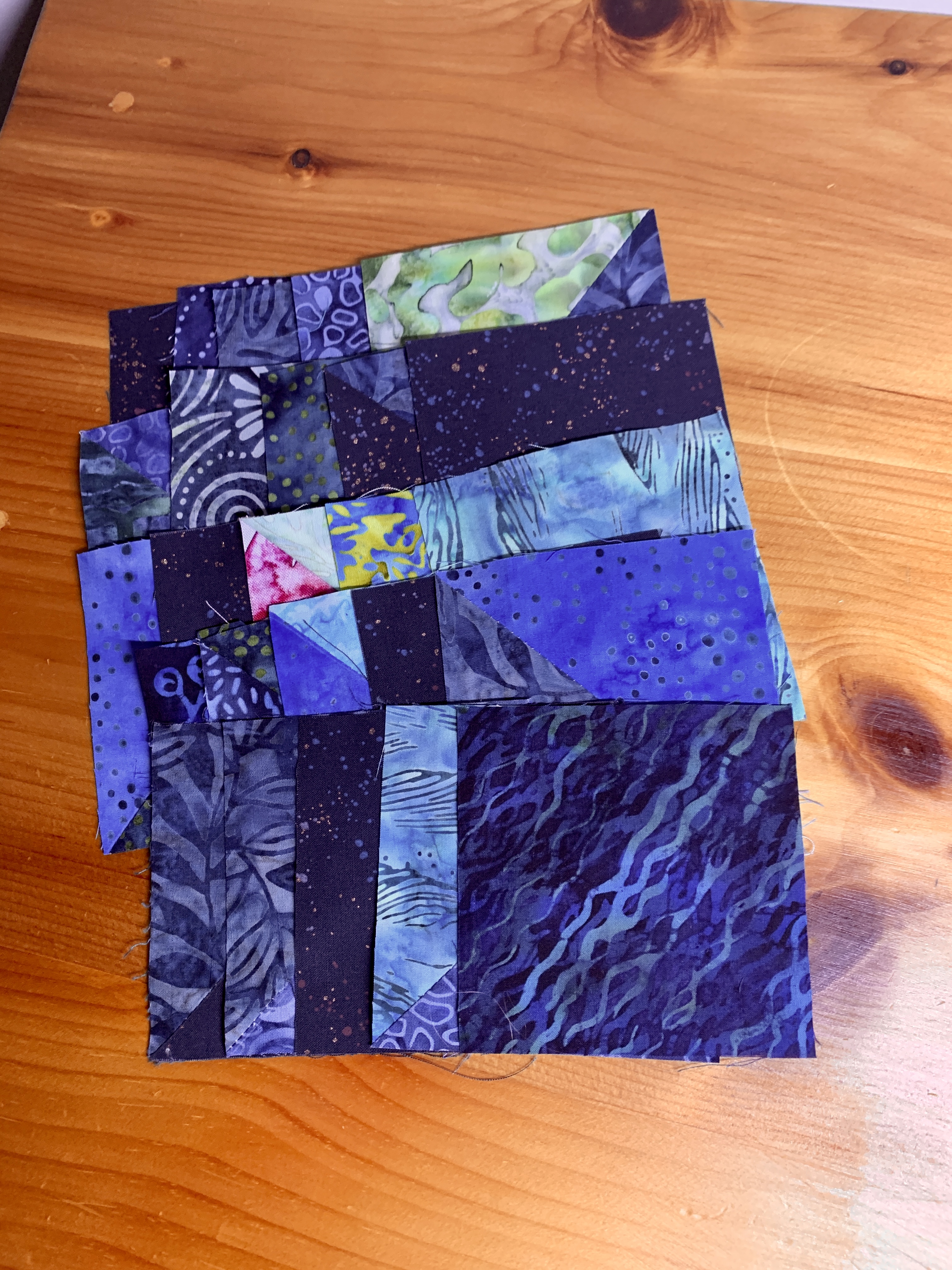 I have assembled two of the 25 blocks elements – 3 to go. I should get those done today. Tomorrow I’ll put the quilt back together, set up the sandwich and then think about what kind of quilting design would complement the Comet Quilt top – no idea about that yet.
