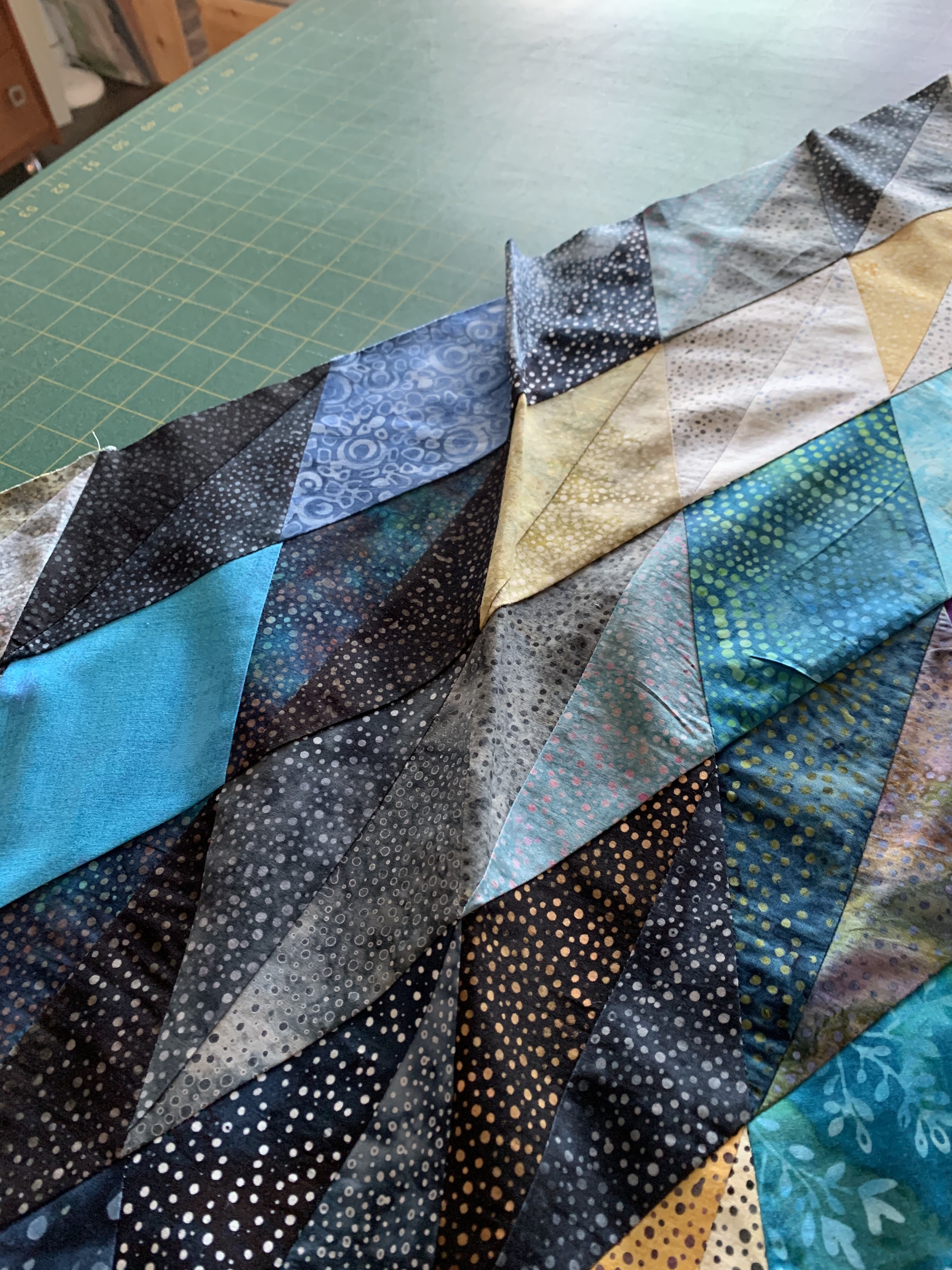 The next step is always the challenging moment – up to this point I can always remove a bit of fabric and try something else, but once I start stitching, the fabric selection is set. In addition, I really only get one go at the stitching because after I’ve picked out the thread there are needle holes (subtle but nevertheless visible). So, it’s take a deep breath and gently hit the foot pedal.