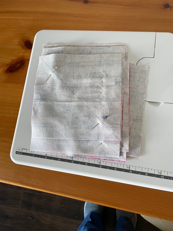 That’s where I am today. I’ll pick this up tomorrow and start sewing the HST. I’ll chain piece each stack; it won’t take long.