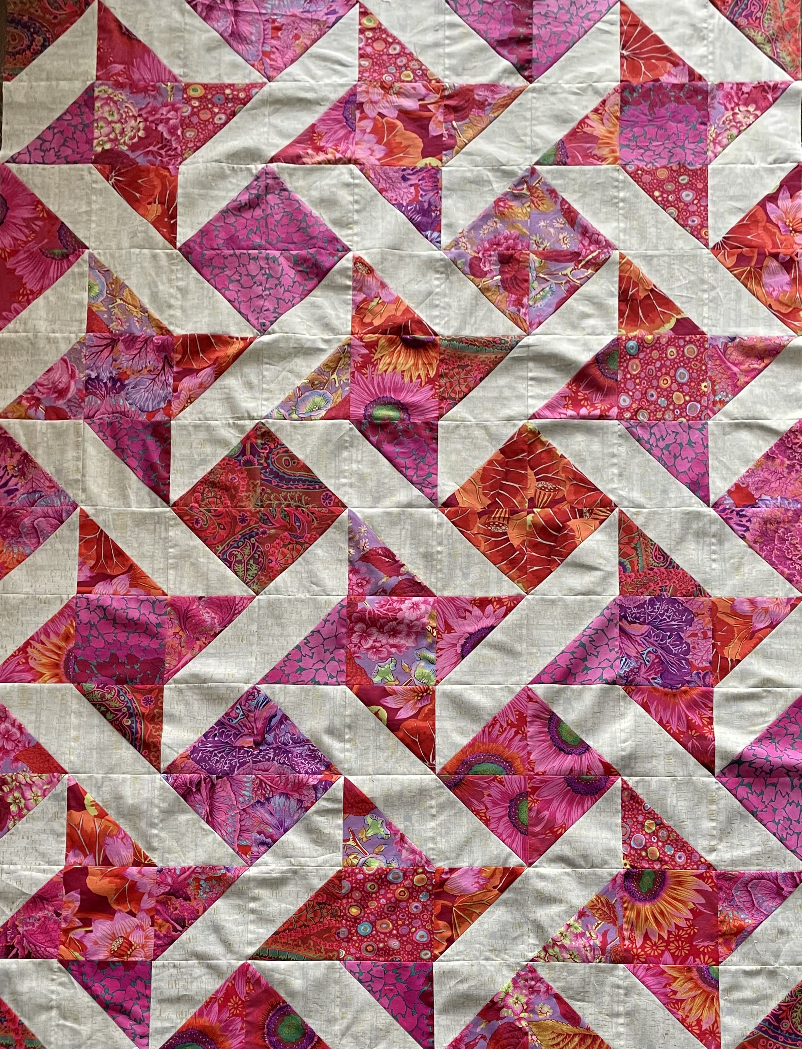 I just took a careful look at the background triangles. I knew the background fabric had a directionality to it but I wasn’t aware of how it was going to play out.
