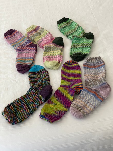 I finally finished the sixth pair of socks last evening. Done. Completed.