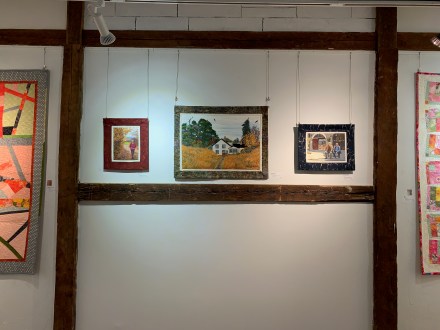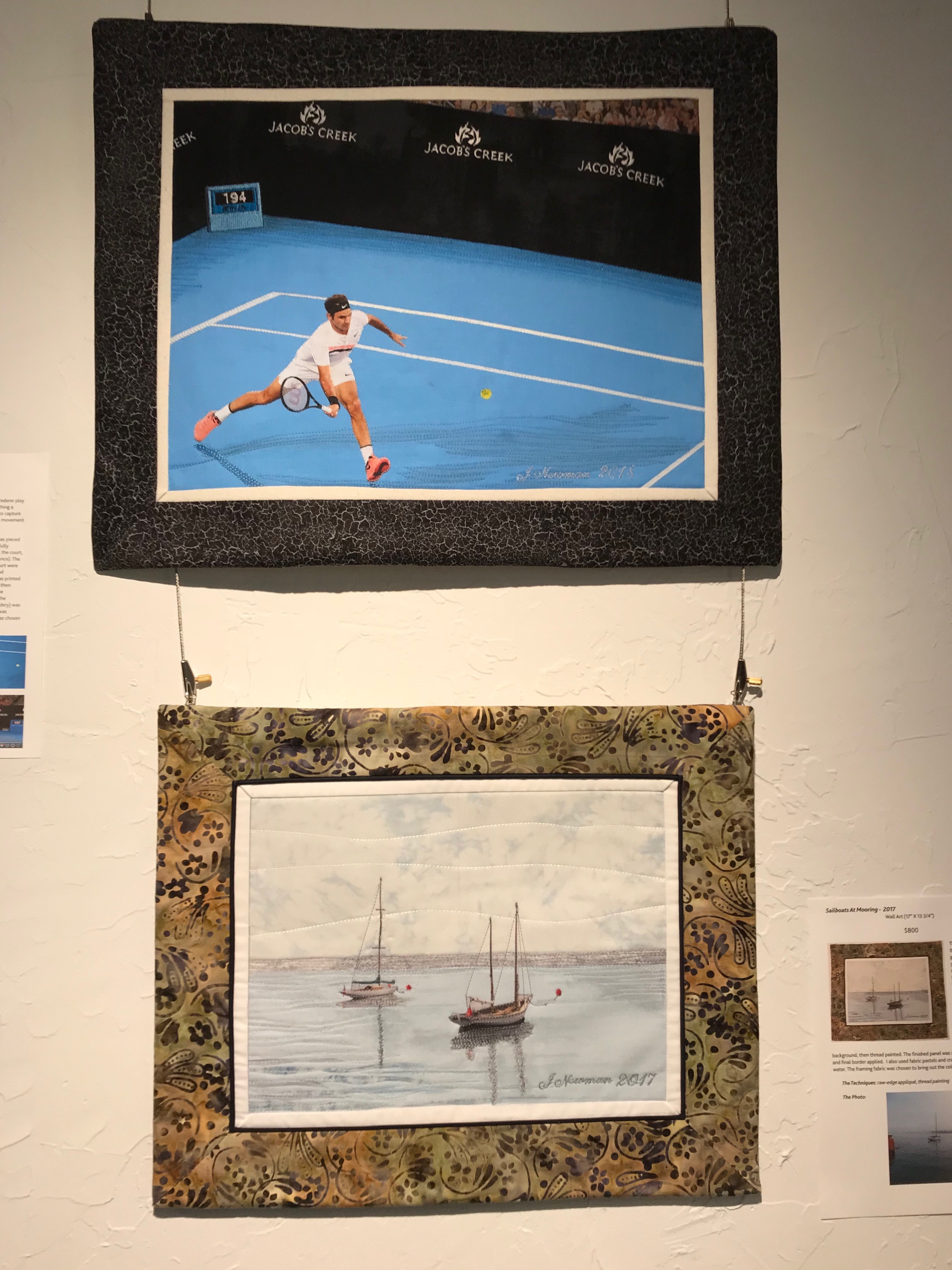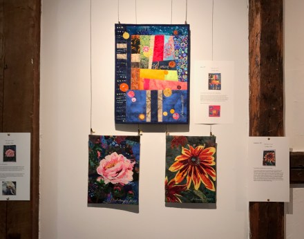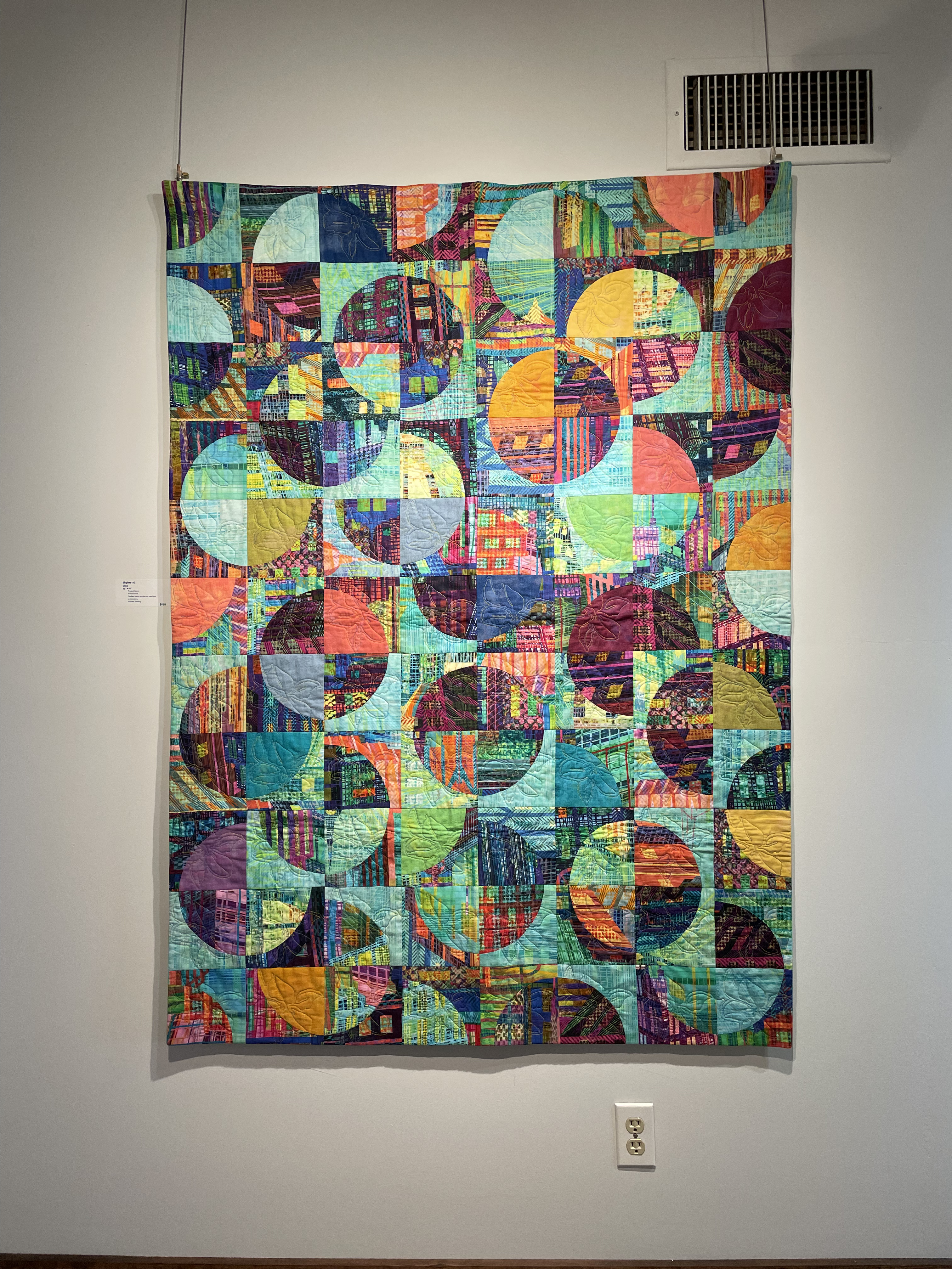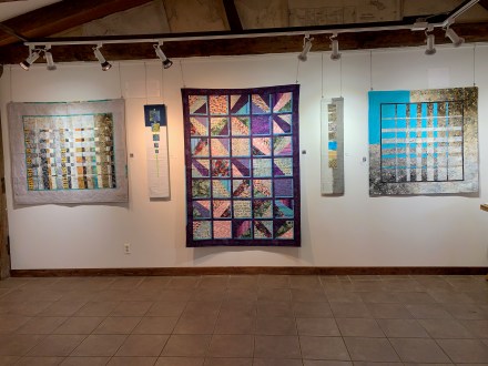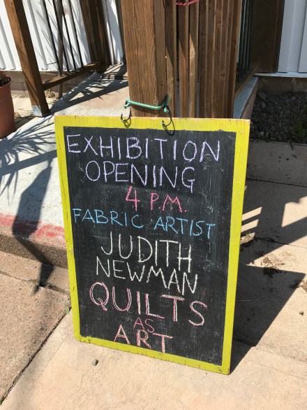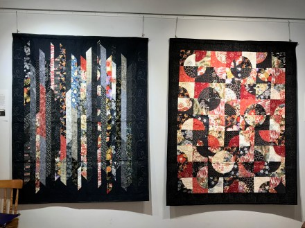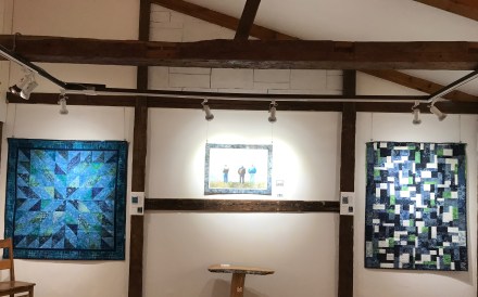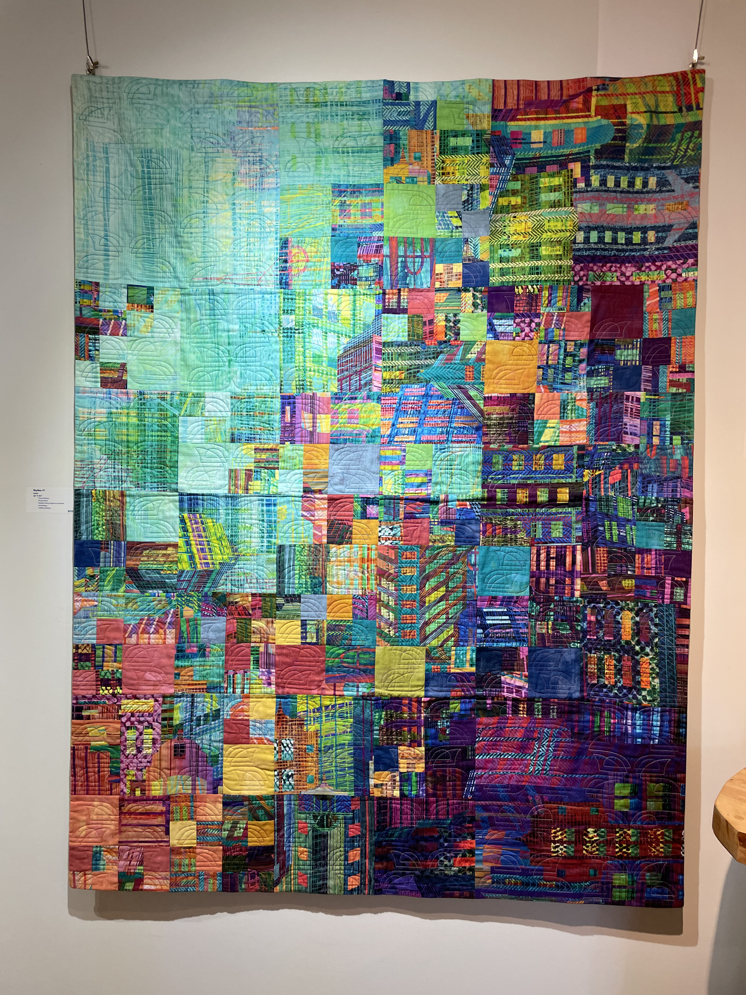 All in all, a good outcome for a show of this size, in a location like this. A lot of visitors dropped in, they all spent more time looking at the quilts and other fibre art pieces than usual, and all left with smiles. When I was in the gallery visiting with friends who’d come to see the exhibit, all sorts of people either eavesdropped on what I was explaining, or came over more overtly to join the conversation. Everybody I spoke to was very engaged and interested in how my art was constructed.