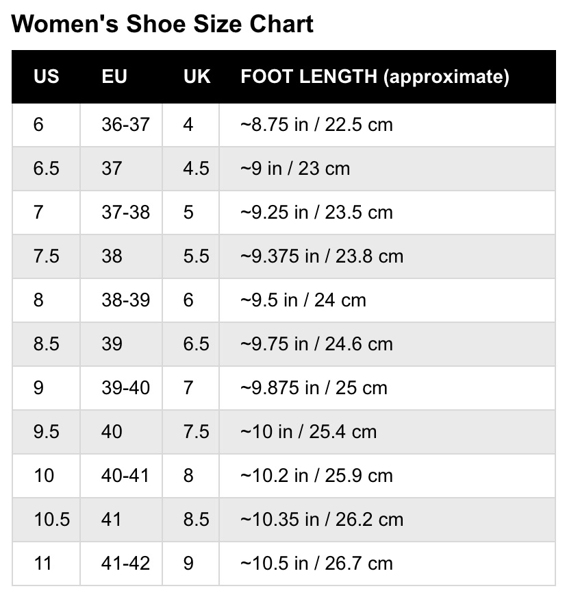- Women’s/Children’s Shoe Sizing Info – helpful to relate to my sock sizing chart above