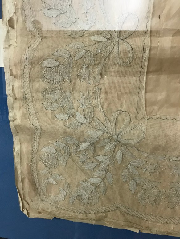 I completed the restoration of this pair of socks yesterday. The back of the heel – the heel flap – was intact (often there’s a lot of wear along that part of the heel but in this pair that wasn’t the case). The problem was with the bottom of the heel and the wear into the instep. Replacing just the heel wasn’t an option because I had nothing to graft onto in the instep. So I decided to redo just the bottom of the heel and to reinforce the weakened area of the instep so I could attach the heel to something solid.