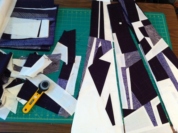 So far, I’ve pieced the fronts and backs. Now I’m ready to piece the sleeves (these are two-piece sleeves which I needed in order to have them fit the fabric width – a single-piece sleeve would have been too wide for the fabric).