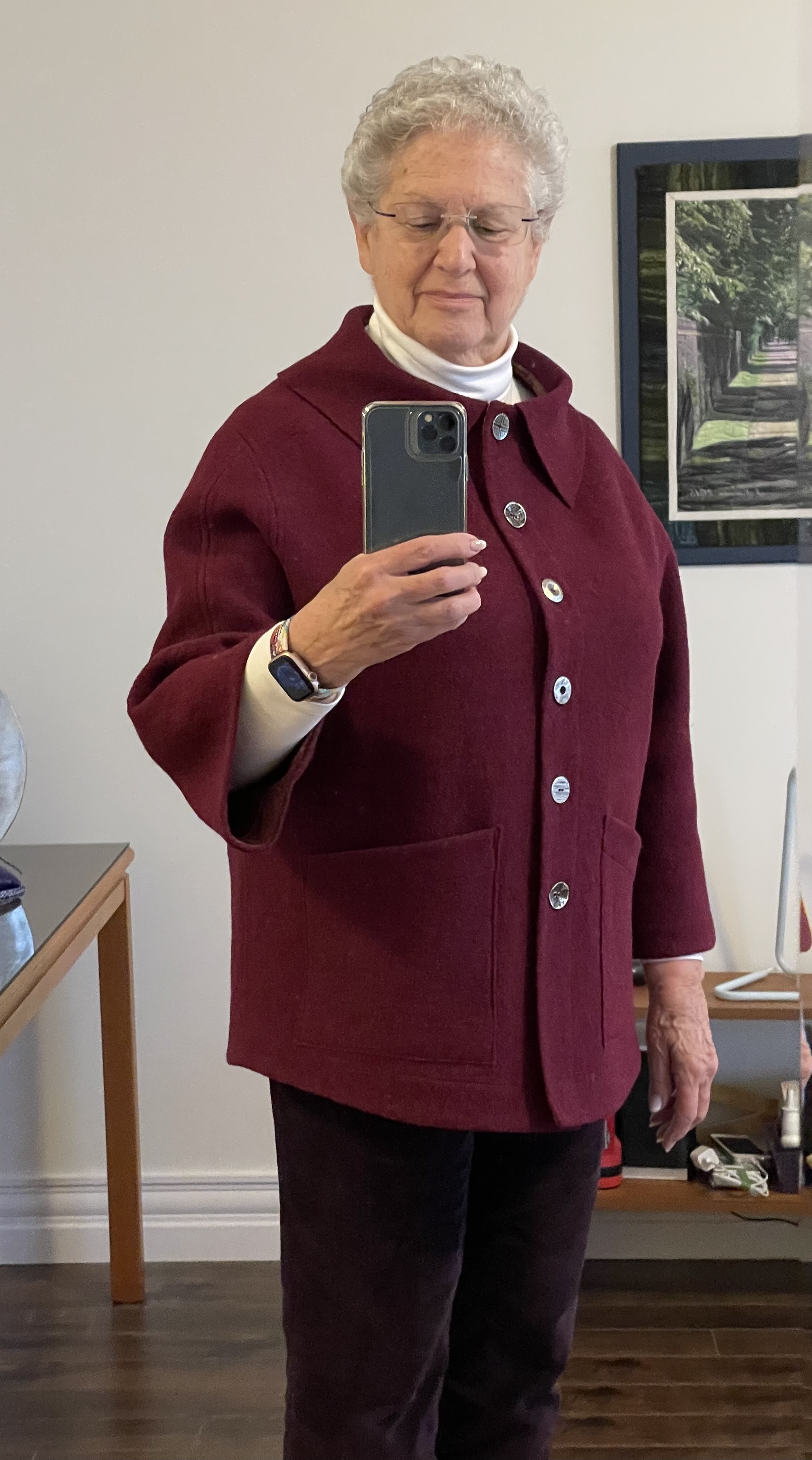 This afternoon I watched Janet Pray’s discussion of “order of construction” (at 3:50 minutes when Janet arrives on the scene) – the order in which you construct garments – something I learned from her several years ago (actually in 2010) when I attended a shirt-making week with her in Ancaster (near Hamilton ON). Up to that point I more or less followed pattern instructions like the rest of us home sewers, but Janet’s explanation of how to think about garment construction based on the idea of “sew on the flat” changed how I approached any garment making I undertook from that point on.