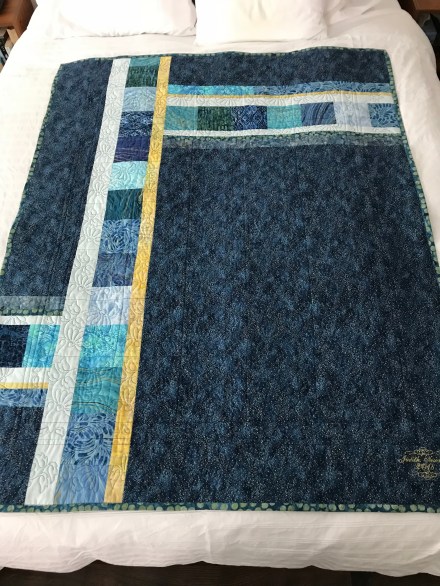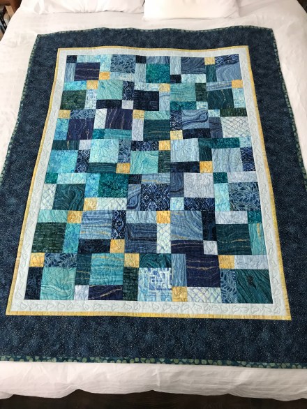 The lovely dark blue and canary yellow ball of yarn caught my eye when I saw it at LK Yarns a couple of weeks ago. What I couldn’t know was the rest of the colour pallet was dull. I knit the yellow cuff then I pulled out the yarn from the centre of the ball (which I always do), found a medium blue yarn and started knitting. I expected the colour to change within a reasonable number of rows – didn’t happen – 25 rows into the sock I was still knitting medium blue – no yellow or dark blue in sight! When I peered into the centre of the ball, I could see a range of pale greens, but it was clear the last colours I’d get to would be the yellow and dark blue.