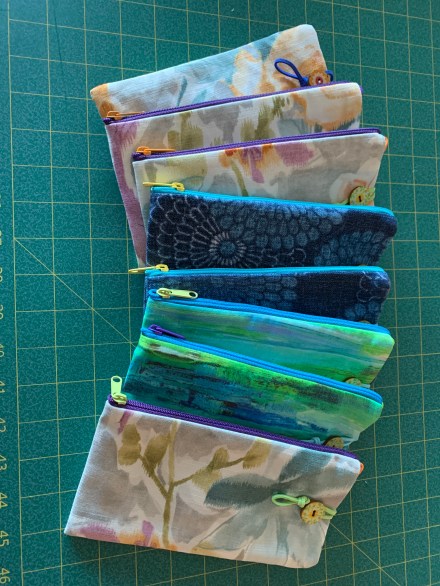 I wanted the case a small amount wider than the one I was using. I’ve stopped carrying a purse of any kind – I’ve consolidated what I carry with me so that it all fits into this small zippered pouch. In its original iteration the case had a single side pocket. I’ve added two more zippered pockets to the last couple I’ve made.
