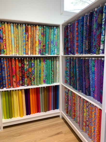 Just one section of the Kaffe Fassett Fabrics – colour sorted