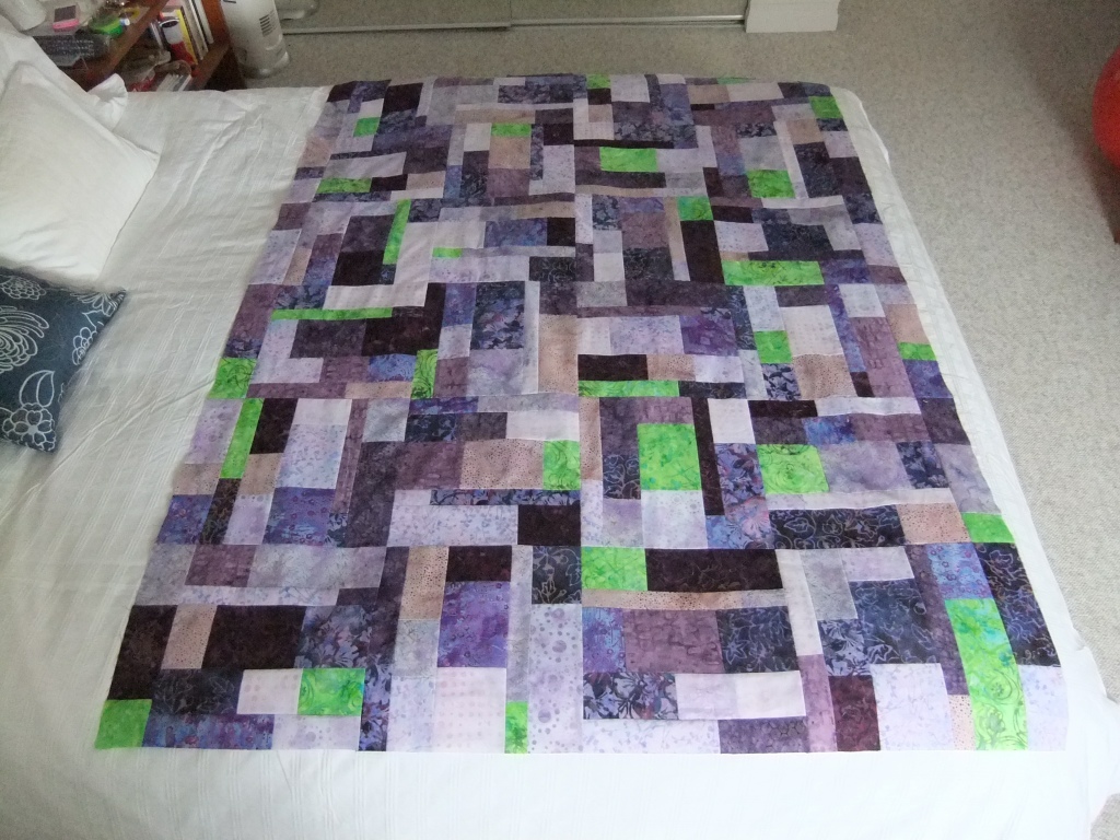 Just finished piecing this top for a “modern” quilt. What makes a quilt “modern”? Bold colours, improvisational piecing, layout, asymmetric design….