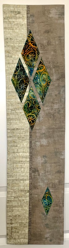 I’m not sure what to call these wall art pieces – they’re narrow raw-edge appliqué quilts constructed from a simple pieced background with a few fused top elements. It’s the simplicity of them that captured me in the first place and I decided to offer the idea as a class.